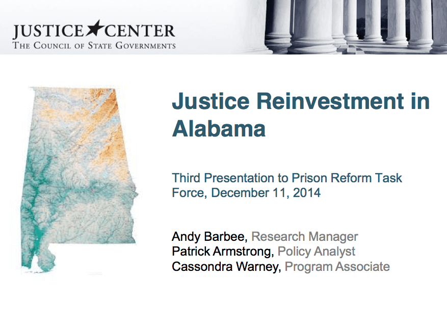 Third Presentation to Alabama Justice Reinvestment Prison Reform Task Force
